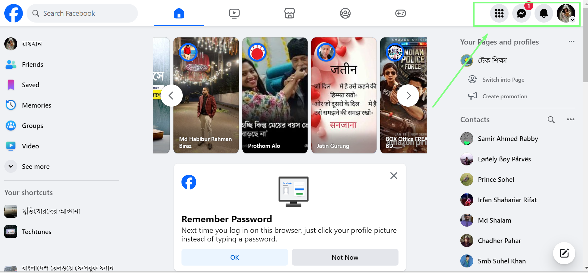 সেকেন্ড শর্টকাটটি হচ্ছে মেসেঞ্জারের। ফ্রেন্ডদের সাথে এবং গ্রুপ চ্যাট করতে এই আইকনে ক্লিক করতে পারেন। এখান থেকে মেসেঞ্জার সেটিংসও পরিবর্তন করতে পারবেন।
