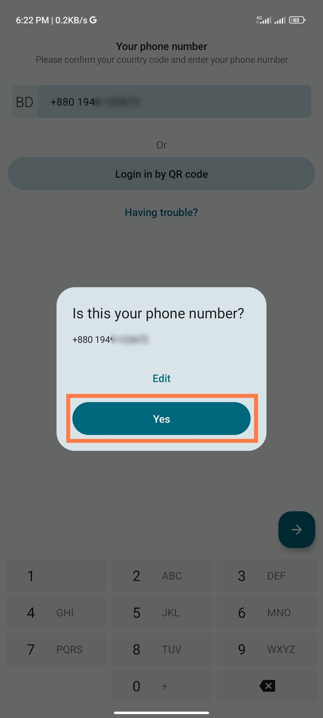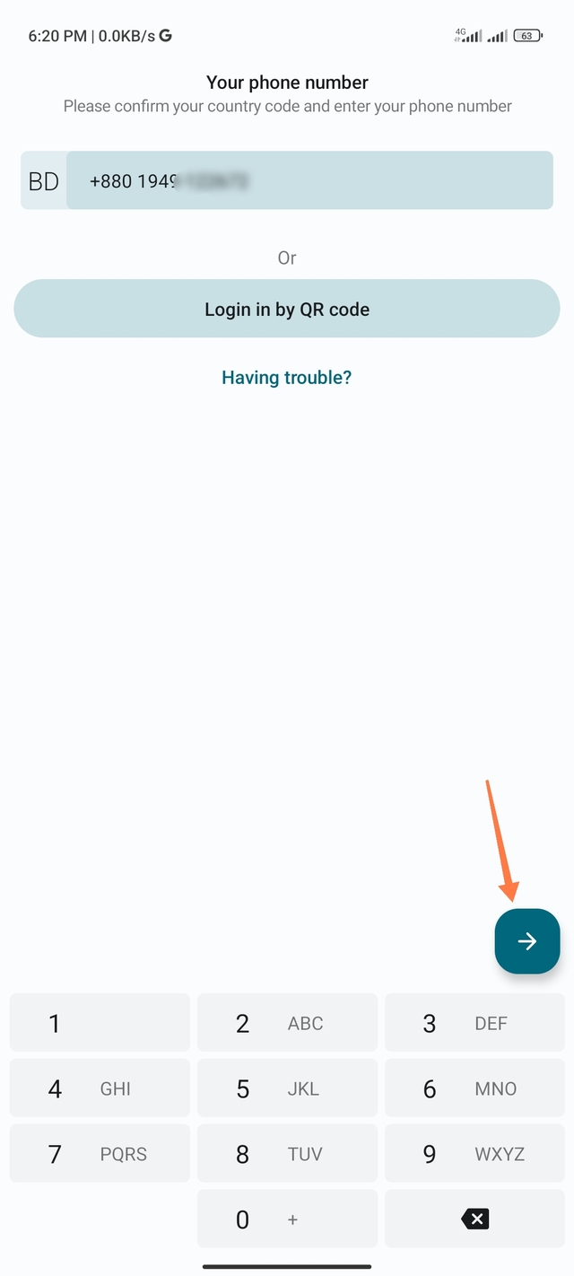 ৪. তারপর আপনারা লগ-ইন অপশনে আপনাদের কান্ট্রি কোডসহ আপনাদের টেলিগ্রাম অ্যাকাউন্টের নম্বরটি দিয়ে দিন। যদি আগে থেকেই একটি টেলিগ্রাম অ্যাকাউন্ট না থেকে থাকে তাহলে নতুন করে একটি টেলিগ্রাম অ্যাকাউন্ট খুলে নিন।
