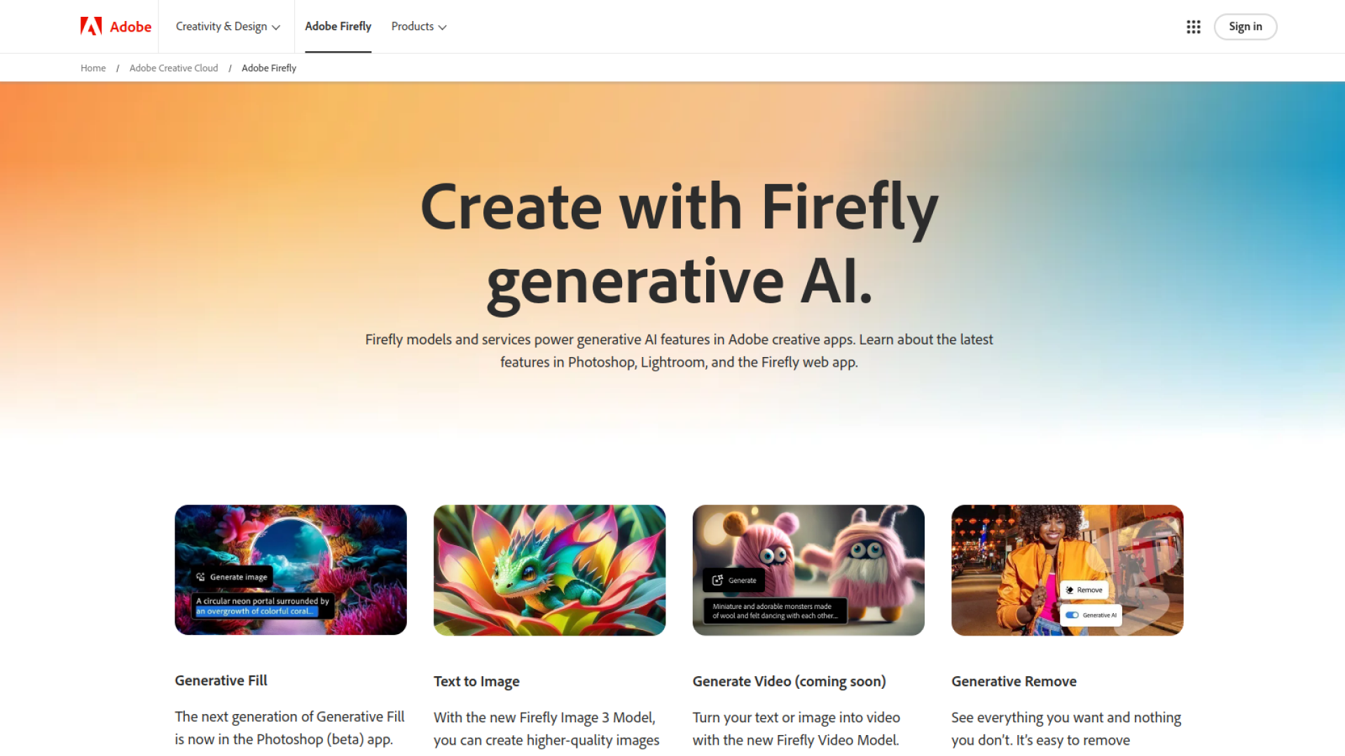 অফিসিয়াল ওয়েবসাইট @ Adobe Firefly