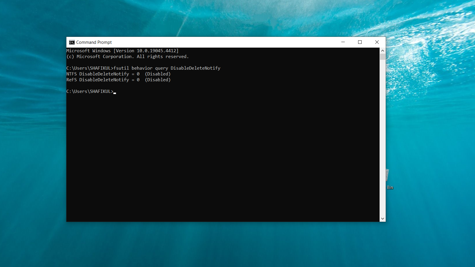fsutil behavior set DisableDeleteNotify 0. আবার ডিজেবল করতে চাইলে নিচের কমান্ড ব্যবহার করুন। fsutil behavior set DisableDeleteNotify 1.