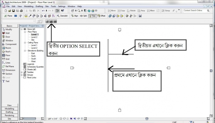TOOL BAR এর DEFAULT 3D BUTTON এ ক্লিক করে 3D দেখতে হয়।পুনরায় PLAN দেখতে PROJECT BROWSER এর FLOOR PLAN এ ক্লিক করতে হয়।