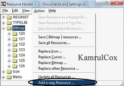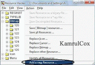 ইমেজ এড করাঃ ইমেজ মানে BITMAP তাতো মনে আছে। এ কাজটি করার জন্য আমার system32থাকা themeui.dll ফাইলটি দরকার হবে। কাজটি করার জন্য প্রথমে আমার পছন্দের ছবিটি themeui.dll ফাইলটিতে এড করবো। তারপর উক্ত ফাইলের Dialogue এর 1015 এ ইমেজটি ব্যবহার করবো। তাহলে কাজ শুরু করি।
