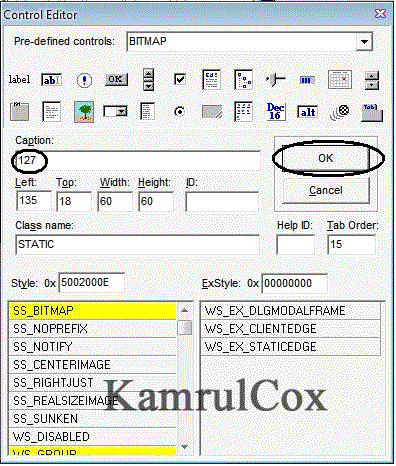 ৪। এবার গাছ মার্কা BITMAP (মাউস রাখলে লেখা আসবে)বাটনে ক্লিক করুন। তাহলে Caption এর নিচে কার্সর আসবে। ওখানে 127 নাম দিন। 127 হলো আমাদেরপছন্দের ছবির নাম যা ইতিপূর্বে আমরাএড করেছি।