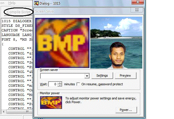 আমার এড করা ছবিটি যেকোন ডায়লগবক্সে ব্যবহার করতে পারি। আমি Screensaver এর পাশে বসাব। এটি থাকে themeui.dll ফাইলের Dialogue নং 1015এ। তাই আমি এখন ওখানে যাব।