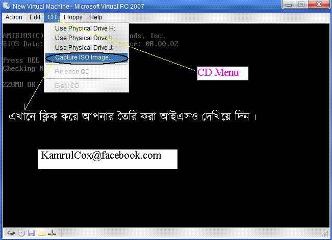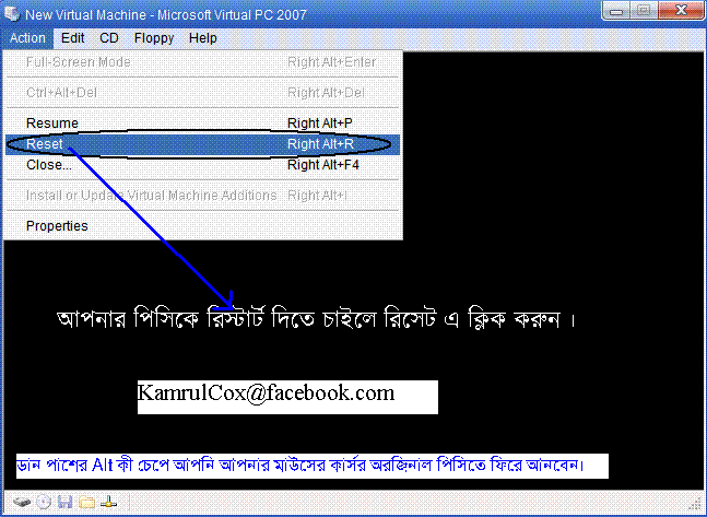 মাউসের কার্সর Host PC তে আনার জন্য কী-বোর্ড থেকে ডানপাশের Alt কী-টি একবার চাপুন। আরোপড়ুন ভার্সুয়াল পিসি এডিশন ইন্সটল। যদি মনে করেন আপনার সিডি পছন্দমত হয়েছে তাহলে ISO ফাইলটি রাইট করতে পারেন।