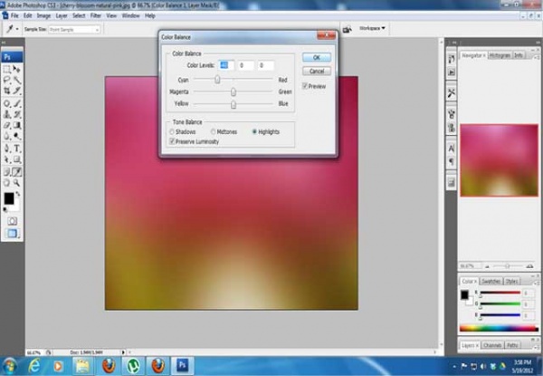 এখন Layer > New Adjustment Layer > Color Balance সিলেক্ট করে Ok ক্লিক করলে Color Balance স্লাইডার আসবে সেখান থেকে Shadows, Midtones, and Highlights এর মান পরিবর্তন করে আপনার কাঙ্খিত রংটি বেছে নিন।