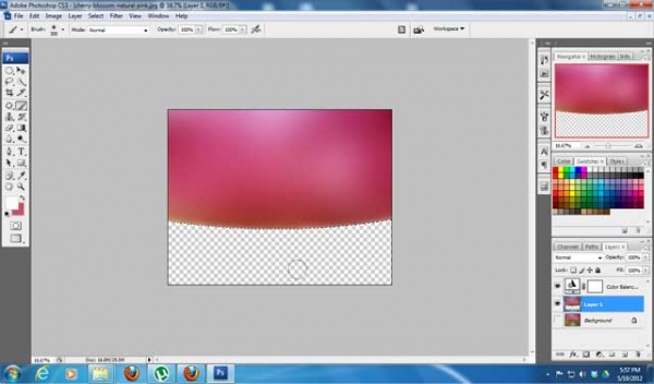 এবার সিলেকশনকে নতুন লেয়ারে নিয়ে আবার সিলেক্ট করুন। এবার Brush টুল নিয়ে সাইজ ২০০-৩০০ পিক্সেল ও hardness এর মান ০ দিন এবং ফোরগ্রাউন্ড কালার সাদা নির্বচন করে সিলেকশনের একেবারে প্রান্তে ব্রাশ করুন। চেষ্টা করুন যাতে একবারে ব্রাশ করা যায়।