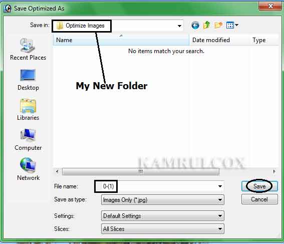 (চ)Save এ ক্লিক করার পর ছবিটি কোথায় সেভ করবেন তার জন্য উইন্ডো আসবে। আমি পূর্বে তৈরি করা Optimize Images নামক ফোল্ডারে সেভ করবো। ছবিটির নাম পরিবর্তন করি নি। যেরকম আছে সেরকমই থাকবে।