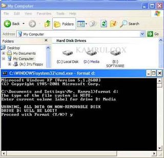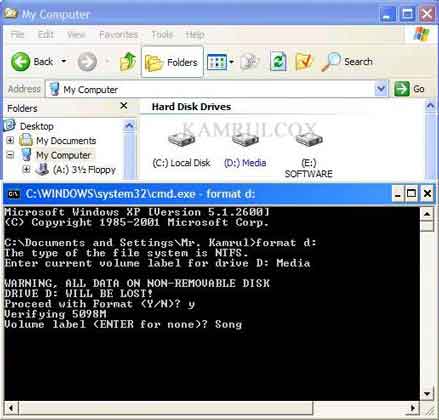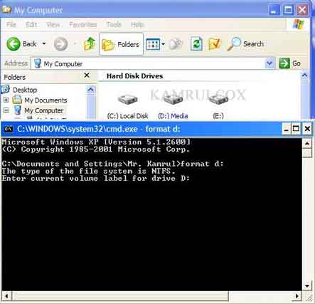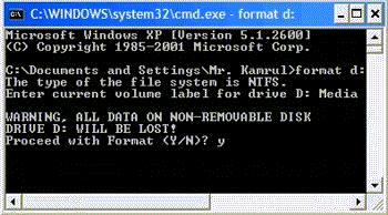 পুরাতন ড্রাইভে Format কমান্ডঃ আমরা উপরে যে কমান্ডটি প্রয়োগ করেছি তা হলো নতুন ড্রাইভের জন্য। ঐ কমান্ডটি নতুন-পুরাতন যে কোন ড্রাইভে কাজ করবে। তবে পুরাতন হলে আপনি /fs: সুইচটি ব্যবহার নাও করতে পারেন। এতে ড্রাইভটি আগে যে ফাইল সিস্টেমে ছিল তাতেই থাকবে।