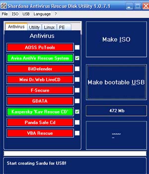 আমার কাছে ৫টি ISO আছে, এগুলো হল ১) Kaspersky rescue Disk 2009 2) Avira Rescue Disk 3)HirenBoot 10.1 4) G-Parted 5) Slax . এগুলো দিয়ে আমি বুটেবলপেনড্রাইভ তৈরী করেছি, সাথে ISO ও তৈরী করেছি।