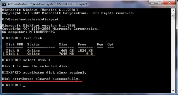 প্রথমেই আমরা নির্দিস্ট ফ্ল্যাস ড্রাইভ থেকে Read only attribute সরানোর চেষ্টা করবো।