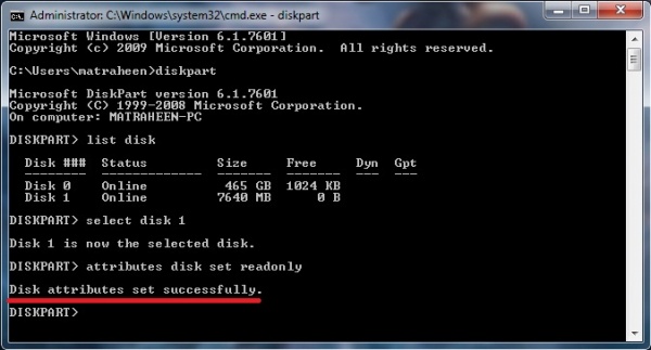 05) কিন্তু আপনি যদি আপনার ফ্ল্যাস ড্রাইভটিকে Write Protection Enable করতে চান, তবে ৩ নং ধাপের পরে আপনাকে টাইপ করতে হবে attributes disk set readonly > Enter চাপুন, দেখবেন Disk attributes set successfully লেখা এসেছে।