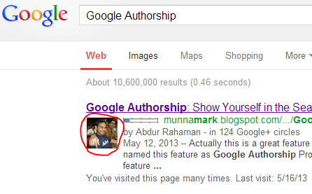 যারা প্রায়ই Google এ সার্চ করে থাকেন তারা বিষয়টা অবশ্যই লক্ষ্য করে থাকবেন। সার্চ করলে মাঝে মাঝে রেজাল্টের সাথে লেখকের ছবি সহ চলে আসে। এটা শুধু Google এ সার্চ করলেই দেখতে পাবেন। বিং বা ইয়াহুতে এখনো বিষয়টি চালু হয়নি। আজ থেকে ঠিক বছর দুয়েক আগে গুগল এই সেবাটি চালু করে। এবং এর নাম দেয় Google Authorship Program.