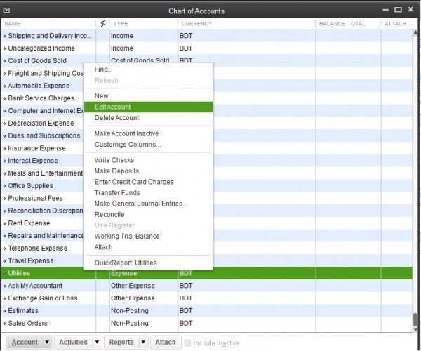 যে লেজারটিকে Eidt করা প্রয়োজন তার উপড় right button click করুন->Edit Account সিলেক্ট করুন।