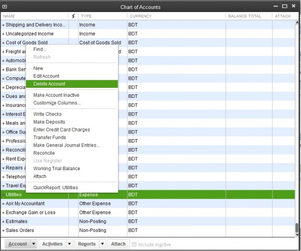 যে লেজারটিকে Delete করা প্রয়োজন তার উপড় right button click করুন->Delete Account সিলেক্ট করুন: