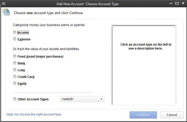 নিম্নোক্ত উইন্ডো আসবে। এখানে খেয়াল করে দেখুন বিভিন্ন ধরনের টাইপ দেখা যাচ্ছে যেমন-Income, Expense ইত্যাদি। আপনি Income সিলেক্ট করুন এবং Continue বাটনে ক্লিক করুন।