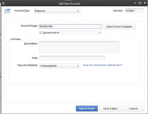 List menu-->Chart of Accounts-->Account-->New-->Expense সিলেক্ট করুন-->Continue তে ক্লিক করুন-->Number ফিল্ডে Account Code নম্বর লিখুন (যেমন: 574001)-->Account Name ফিল্ডে Electric Bill লিখুন।