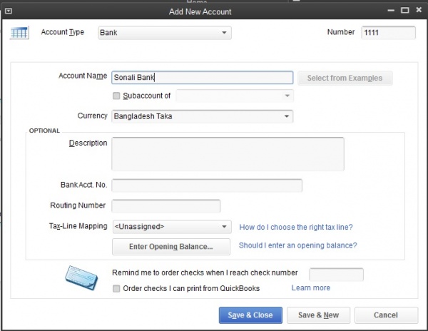 আমরা জানি হিসাব বিজ্ঞান একটি চলমান প্রক্রিয়া। প্রত্যেকটি লেনদেনের রেকর্ড এখানে পরিপূর্ণভাবে সংরক্ষিত থাকতে হবে। কোনও প্রতিষ্ঠান যদি সিদ্ধান্ত নেয় যে তারা আজ থেকেই তাদের হিসাব সংরক্ষণের জন্য QuickBooks Software টি ব্যাবহার করবে, তবে এক্ষেত্রে উক্ত প্রতিষ্ঠান গতকাল পর্যন্ত তাদের পুরাতন হিসাব সমূহের closing balance নির্ধারন করবে। এবং QuickBooks এর Chart of Accounts এ লেজারগুলো তৈরী করার সময় সেই লেজারের গতকালের ব্যালেন্সটিকে এন্ট্রি করে নিতে হবে। এখানে উল্লেখ্য যে শুধুমাত্র Asset, Liability এবং Equity টাইপের লেজারগুলোরই Opening Balance হয়ে থাকে। Income বা Expense এর কখনই Opening Balance হয় না। আসুন দেখা যাক কিভাবে Opening Balance এন্ট্রি করতে হয়। নীচে কিছু লেজার এবং তাদের Opening Balance দেয়া হলো: