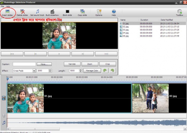 এবার Insert Slides বাটনে ক্লিক করে আপনার ছবি নিয়ে নিন যে ছবি গুলো দিয়ে স্লাইড বানাতে চান।