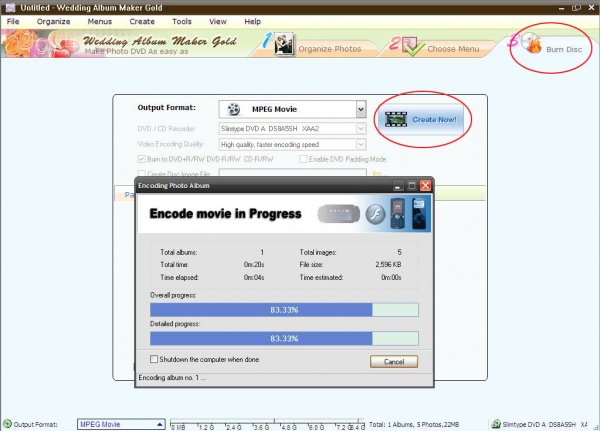 এবার chose a Menu বাটনে ক্লিক করে একটি মেনু নিন। সব শেষ Play বাটনে ক্লিক করে দেখুন কেমন হয়েছে ঠিক থাকলে Burn Disc এ ক্লিক করে পছন্দের ফরম্যাট সিলেক্ট করে Create Now বাটনে ক্লিক করুন।