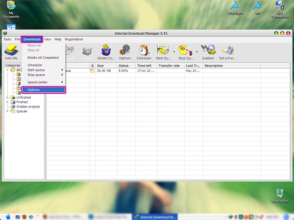 IDM রান করার পর Downloads থেকে চলে যান Options এ। ঠিক নিচের দেখানো ছবির মত৷