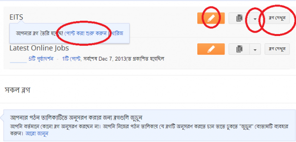 তারপর নিচের লাল গোল নির্দেশিত জায়গা গুলো থেকে আপনি নতুন পোস্ট করতে পারবেন, এডিট করতে পারবেন,