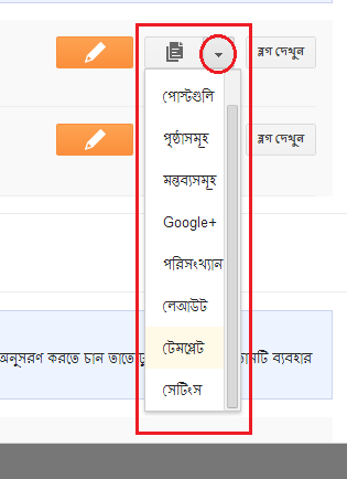 ৩য় নাম্বার লাল অপশন থেকে ব্লগের সকল অপশন পাবেন অর্থাৎ এই অপশন থেকে আপনার ব্লগের সকল লে-আউট, টেম্পলেট, সেটিং বদলাতে পারবেন। নিচের ছবি থেকে