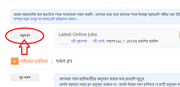তারপর নতুন ব্লগ অপশনে ক্লিক করুন। নিচের ছবি দেখে করুন।