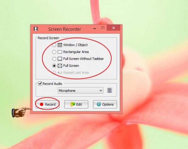 Screen Recorder বাটনে ক্লিক করে চালু করুন, তাহলে নিচের মত আসবে। এবার নিচের মত সব ঠিক রেখে Record বাটনে ক্লিক করুন।