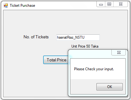 MessageBox.Show(totalPrice.ToString() + " taka", "Total Price");