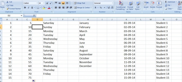 Saturday, Sunday লিখলে পরের দিনগুলোর নাম আসবে। 01/09/2014, 02/09/2014 লিখলে পরের তারিখগুলো আসবে (যদি তারিখ সিরিজ হিসাবে নিচের চিত্রের মত না আসে তাহলে আপনার পিসি এর ডেট ফরম্যাট কন্ট্রোল প্যানেল থেকে অথবা Format Cells-Customs থেকে ঠিক করে নিতে হবে)।