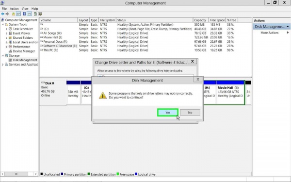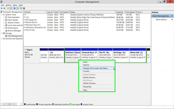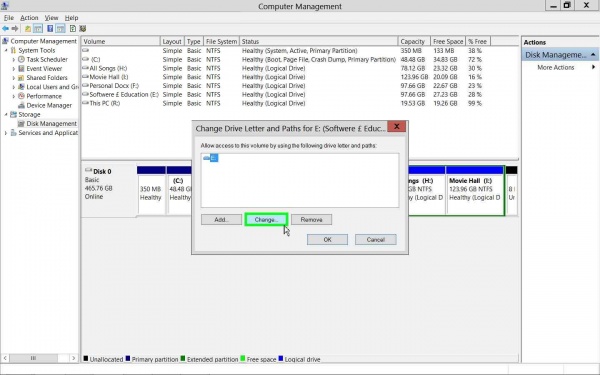 এবার যেই ড্রাইভের লেটার পরিবর্তন করতে চান,তার উপর রাইট ক্লিক করে Change Drive Letter and Paths এ ক্লিক করলে যথারীতি নিচের মত পাবেন।আমি E ড্রাইভ নিলাম