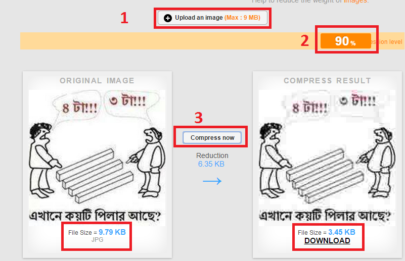 এখন সর্বশেষ অপশন ৩ এ অথ্যাৎ Compress Now তে ক্লিক করলে আপনার কাঙ্খিত ইমেজটি বাম পাশের ঘরে পেয়ে যাবেন। দুটো ছবির প্রোপারটিস দেখে নিতে পারেন। নিচে প্রোপারটিস দেখা যাবে। সর্বোশেষ ইমেজটি ডাউনলোড করে নিন। আজ এই পর্যন্ত। সবার সুস্থ্যতা কমানা করে শেষ করলাম। ধন্যবাদ।টিউনটি প্রথম প্রকাশ এখানে