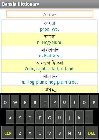 আপনি মেনু টিপে 'বাংলা থেকে ইংরেজি' এবং 'ইংরেজি থেকে বাংলা' মাধ্যম করতে পারেন।