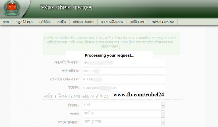 আপনি ভোটার হয়ে থাকলে রেজিষ্ট্রেশন করে এই ওয়েবসাইটের সুবিধা নিন। রেজিষ্ট্রেশন করতে নিন্মের ধাপসমূহ অনুসরণ করুণ-
