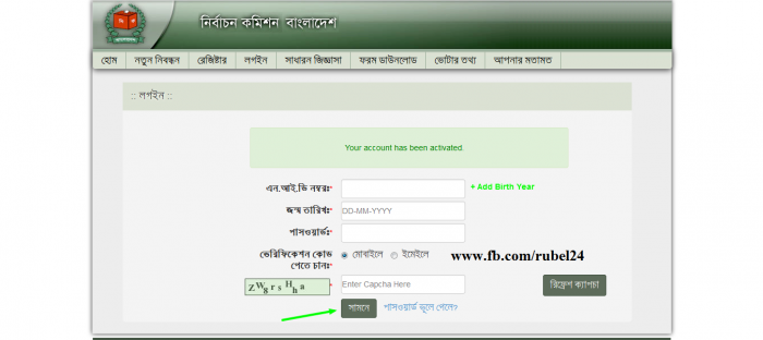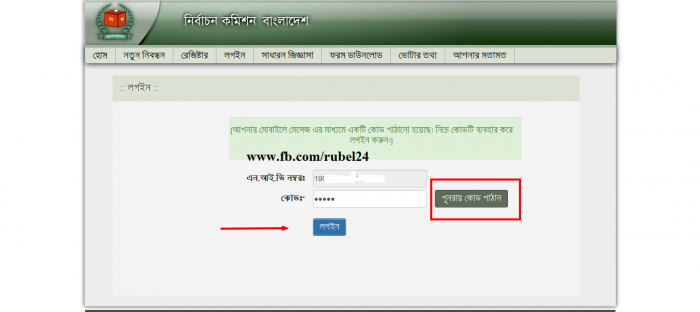 লগইন করতে আপনার জাতীয় পরিচয়পত্রের নম্বর (১৩ সংখ্যার হলে অবশ্যই প্রথমে আপনার জন্মসাল দিয়ে নিবেন) জন্মতারিখ ও আপনার দেওয়া পাসওয়ার্ড দিয়ে ভেরিফাই কোড কিভাবে পেতে চান তা সিলেক্ট করতে হবে ।