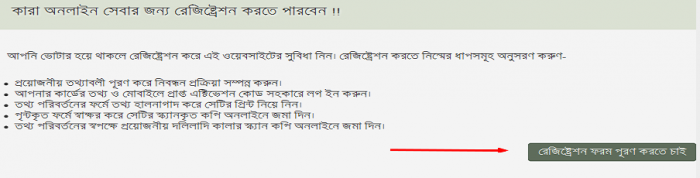 এবার "রেজিষ্ট্রেশন ফরম পুরন করতে চাই" ক্লিক করুন ।