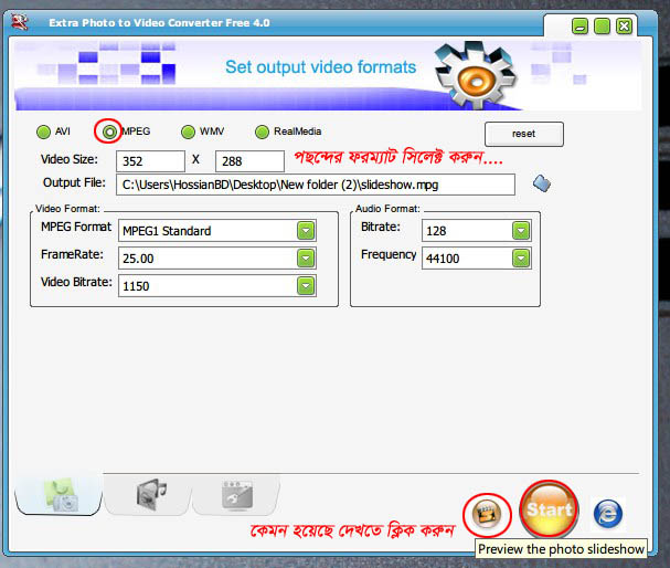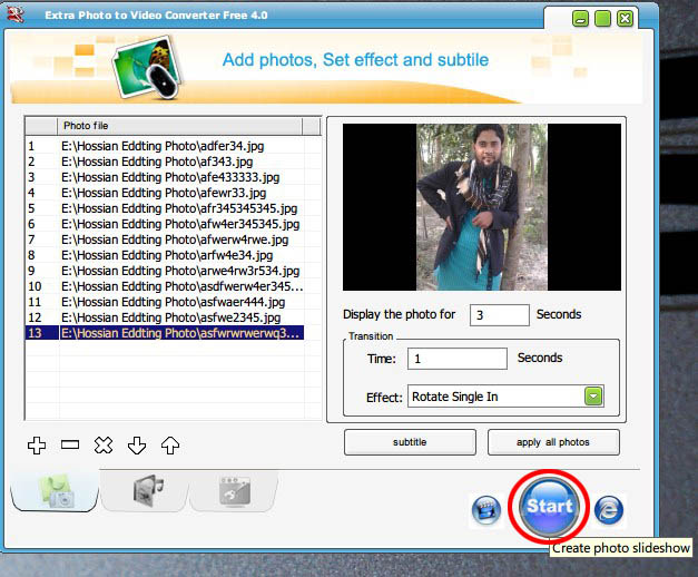 সব কিছু ঠিক থাকলে অবশেষে Start ক্লিক করুন। ব্যাস তৈরি হয়ে গেল ছবি থেকে ভিডিও এবার দেখুন কেমন হয়েছে।