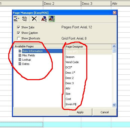 এখানে বামপাশে আছে Page বা Sheets list আর ডানপাশে আছে Header list. Page list এ এখন হত দেয়ার দরকার নাই, Default হিসেবেই কাজ শুরু করবো। Header list এ কিছু আছে Active header কিছু আছে Inactive. এখন আমাদের কাজ হবে প্রয়োজনিয় Header গুলো Active করে নেওয়া। এটা করতে হলে আমাদেরকে যা করতে হবে। তা হলো Active header গুলুতে কোন কিছু অপ্রয়োজনিয় থাকলে তা ডাবল ক্লিক করে সরিয়ে নিতে হবে, (ডাবল ক্লিক করলেই Inactive list এ চলে যাবে) আর Inactive list থেকে ডাবল ক্লিক করে প্রয়োজনিয় header Active করে নিতে হবে(ডাবল ক্লিক করলেই Active list এ চলে যাবে)। আমার Active list এ আছে, Season, Vend code, DCS, Desc1, Desc2,Desc3,Attr,Size, Cost, Inven P (Price), Mrg%, Qty, Cmp Qty, Last RCVD,Last Sold. তার পর Active header গুলুকে ক্রমানুসারে সজাতে লেখা গুলুকে Drag & Droop এর মাধ্যমে উপর নিচ করা যাবে। ক্রমানুসারে সাজাতে আরো একটা পথ আছে। তা হলো Apply করার পরে। তাহলে আপাতত Apply করে বেরিয়ে আসুন।