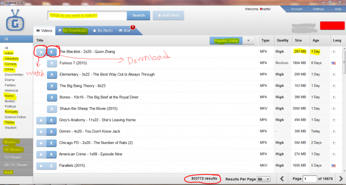 Action,Adventure,comedy,Crime,Drama,Horror,Romantic ইত্যাদি মুভি ডাউনলোড করতে পারবেন এছাড়া T.V Shows and Adult ভিডিও ডাউনলোড করতে পারবেন।