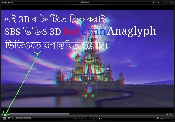 বিঃদ্রঃ আপনি যদি সরাসরি 3D Red Cyan Anaglyph ভিডিও জোগাড় করতে পারেন তাহলে আপনাকে আর কোন বিশেষ প্লেয়ারের সাহায্য না নিয়েই যেকোন প্লেয়ার আর রেড সায়ান থ্রিডি চশমার সাহায্যে 3D ভিডিও উপভোগ করতে পারবেন।