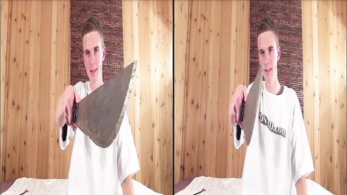ভিডিও থেকে নেওয়া উপরের স্ক্রিনশটটি লক্ষ্য করলে দেখতে পাবেন যে পাশাপাশি দুটি ইমেজে কিছুটা কৌণিক পার্থক্য রয়েছে। এই কৌণিক পার্থক্যের কারণ হলো ঐ ভিডিওটি পাশাপাশি অবস্থিত দুটি ক্যামেরার মাধ্যমে ধারন করা, যারা কিছুটা কৌণিক অবস্থানে থাকে। বামপাশের ইমেজটিতে তলোয়ারটির বামপার্শ্বের অংশটা বেশি বিস্তৃতভাবে দেখা যাচ্ছে এবং ডানপাশের ইমেজটিতে তলোয়ারটির বামপার্শ্বের অংশটি কম বিস্তৃতভাবে দেখা যাচ্ছে।। এই কৌণিক পার্থক্যের কারনেই আমরা 3D দেখতে পারি। এটির 3D দেখার সময় আপনার মনে হবে তলোয়ারটি স্ক্রিন থেকে একদম বেরিয়ে এসেছে এবং আপনার দিকে তাক করা আছে, আরেকটু হলেই যেন আপনাকে আঘাত করে বসবে। কৌতূহলবশত আপনি হয়ত স্ক্রিনের সামনে হাত দিয়ে তলোয়ারটিকে ধরারও চেষ্টা করবেন।