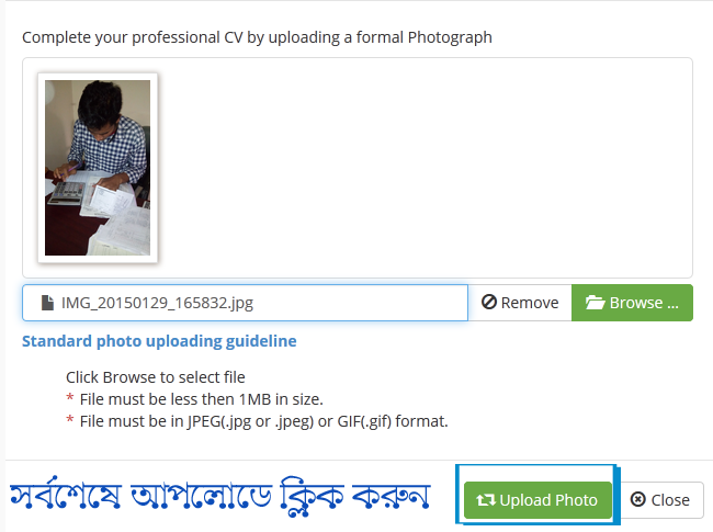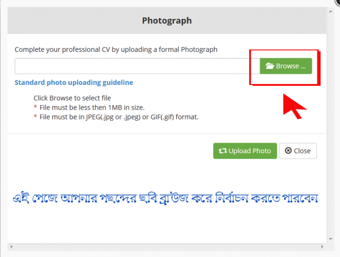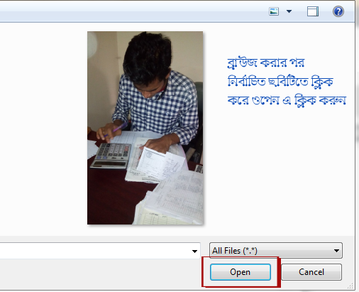 Browse এ ক্লিক করে আপনার পছন্দের ছবিটি নির্বাচন করুন।