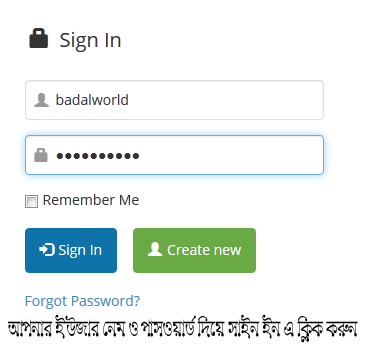 সঠিক ইউজার নেম ও পাসওয়ার্ড দিন।