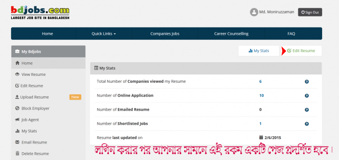 এই পেজে আপনি Edit Resume এ ক্লিক করুন।