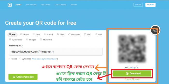 Create QR code এ ক্লিক করার পর আপনি আপনার QR code পেয়ে যাবেন পাশের বক্স টাতে।