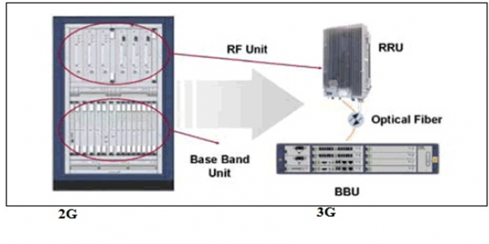এবার কষে লাত্থি মারুন ২জির উপরে। MRFU দিয়ে গরুর গাড়ীর মত স্পীডে আর কতদিন? এবার চাই ৩জি স্পীড (!) হুয়াউয়ে ২০০৫ সালে প্রথম ৩জির জন্য নতুনভাবে আর্কিটেকচার ডিজাইন করে নিয়ে আসে BBU(Baseband Unit)+RRU ইউনিট যেটা নেটওয়ার্ক স্ট্যাব্লিশিং এর ৩০% খরচ কমিয়েছে। এই দুই ইউনিট এর মাঝে common public radio interface (CPRI) দিয়ে কানেকশন করা হয়। এটা (M)RFU এর দুইটা অংশ আলাদা করা।