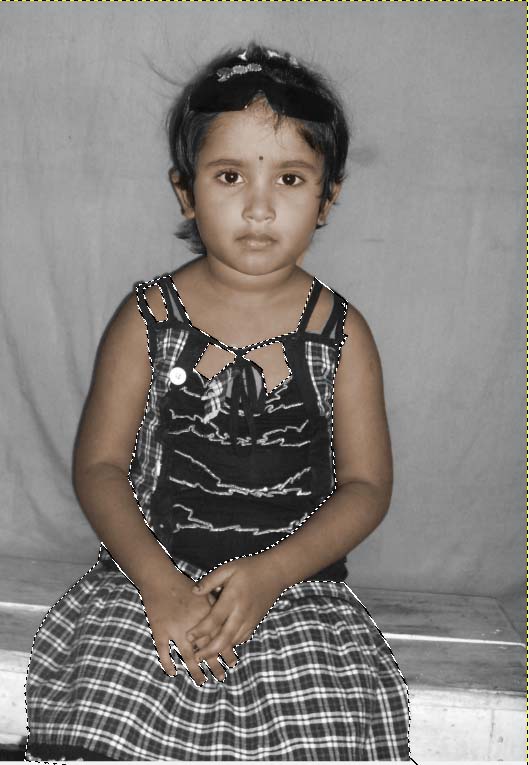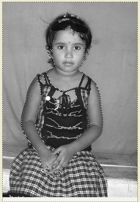 আমরা পর্যায়ক্রমে সব অংশ কালার করে নিব। প্রথমে ত্বকের অংশ ব্লক করে নিব। অনেকভাবে গিম্পে ব্লক করা যায়। আমরা করব Free Select Tool (F) দিয়ে। এই টুল দিয়ে সহজেই আপনি কোন অংশ ব্লক করতে পারবেন। তবে ব্লক করার সময় ছবিকে বড় করে নেবেন তাহলে ব্লক করা ভালো হবে। ছবি বড় করতে Ctrl+মাউসের চাকা ঘুরালেই হবে। আপনার যদি ছবিতে একাধিক অংশ ব্লক করার প্রয়োজন হয় তাহলে এক অংশ ব্লক করার পর অপর অংশ শুরু করার সময় শিফট চেপে ধরে ব্লক করুন। তাহলে একাধিক অংশ সহজেই ব্লক করতে পারবেন। যেমন আমি উপরের ইমেজের ত্বকের অংশ ব্লক করেছি