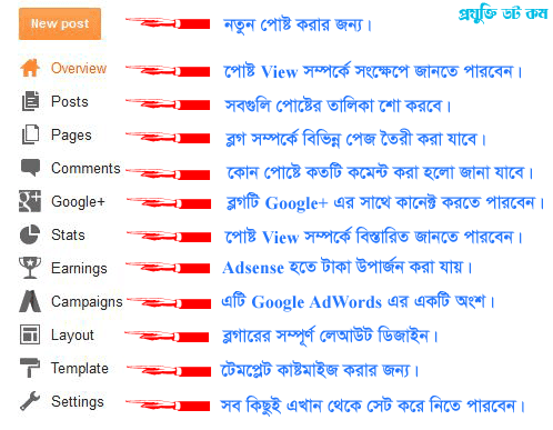 ব্লগার ড্যাশবোর্ড পরিচিতি