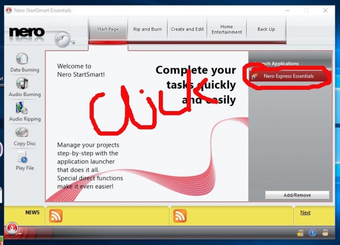 Window তে Nero Express Essentials Menu না থাকেল নিচের ছবির মত করে নিয়ে আসি।